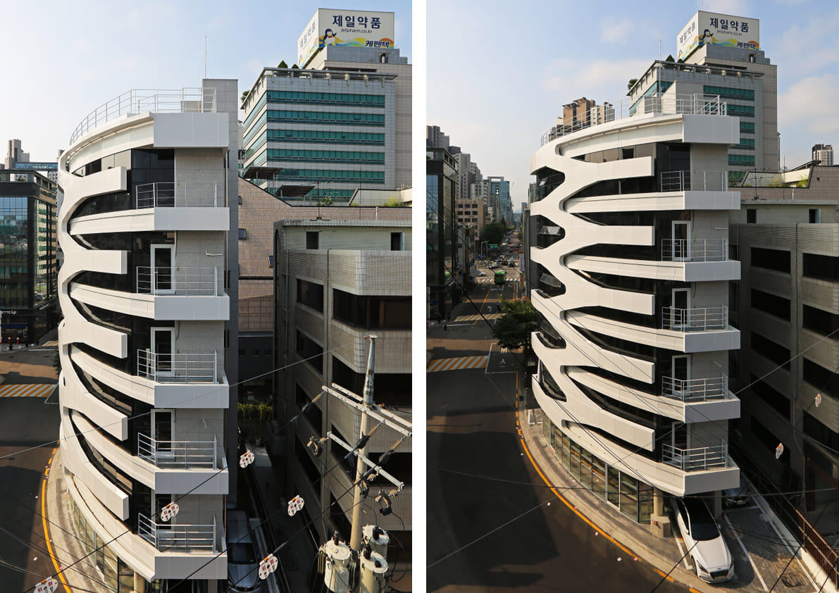 Banpo-dong Commercial Building is a unique project located on Sapyeong-daero between Sapyeong Station and Sinnonhyeon Station. By utilizing the characteristics of the land, the location of the building is clearly revealed at the surrounding crossroads, and as a neighborhood living facility, it has the optimal conditions to be easily found around it. The project design is centered on the encounter with a unique road, and a vertical core space is placed inside the land to emphasize the sense of openness.